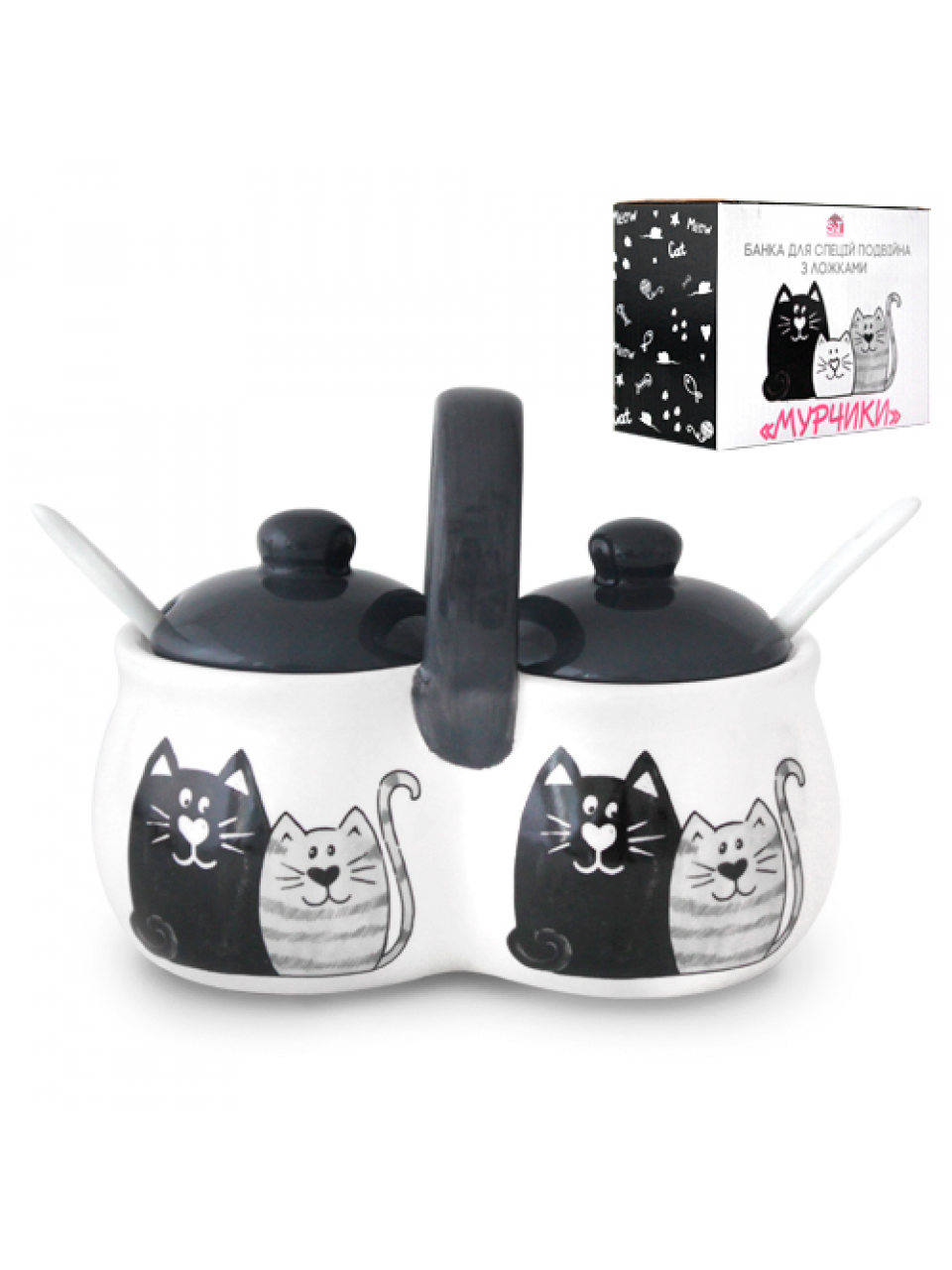 Банка керамічна S&T "Мурчики" подвійна 16*9,5*11,5 см. (2*300 мл.) з 2 ложками