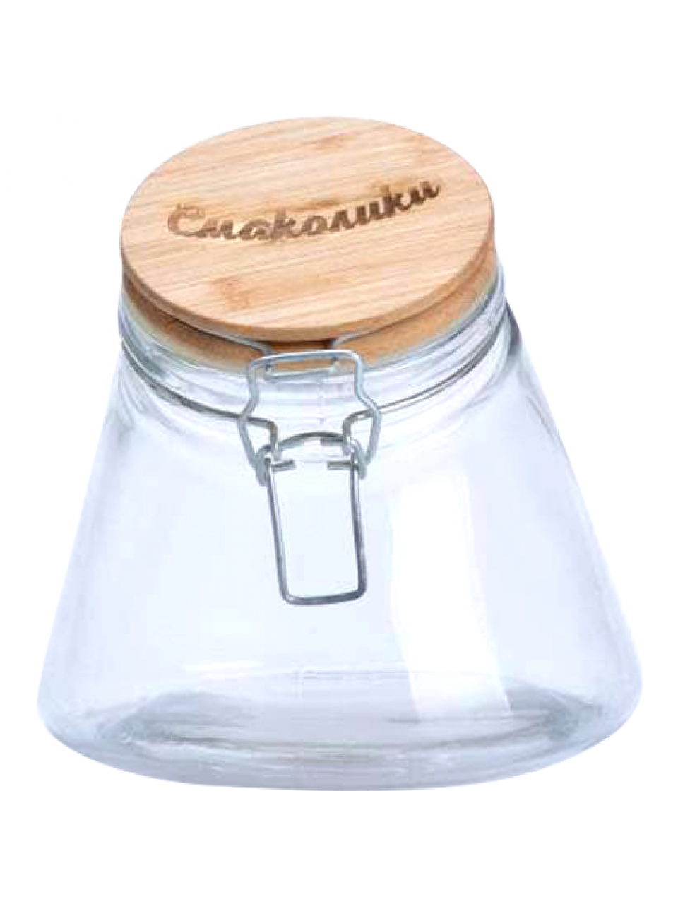 Банка скляна на зажимі S&T Смаколики 1200 мл. з бамбуковою кришкою