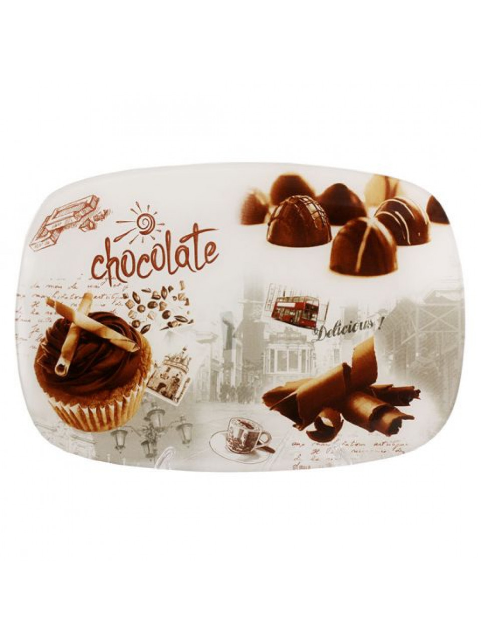Блюдо Interos Шоколад скляне прямокутне 34,5*23,5 см., з декором