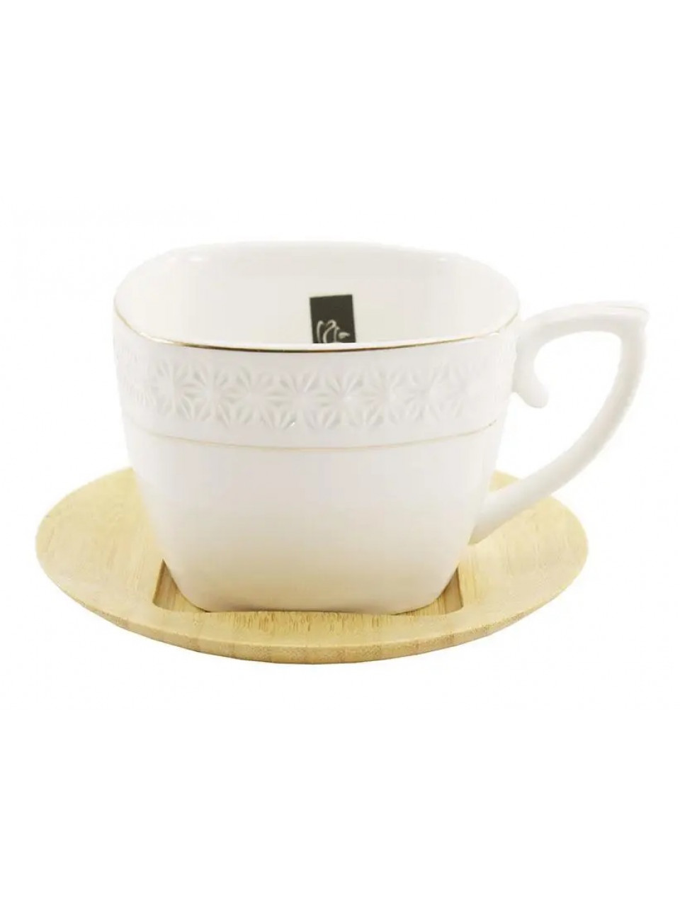Чашка чайна 240 мл. Interos "Снігова королева" з бамбуковим блюдцем