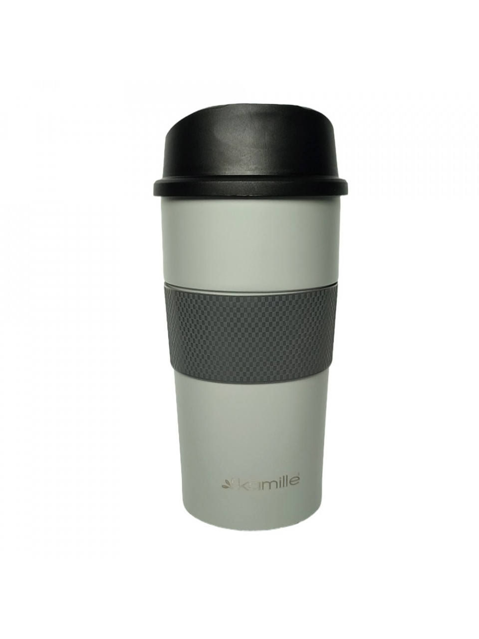 Чашка-термос 480 мл. Kamille із нержавіючої сталі з TPR вставкою (сірий)