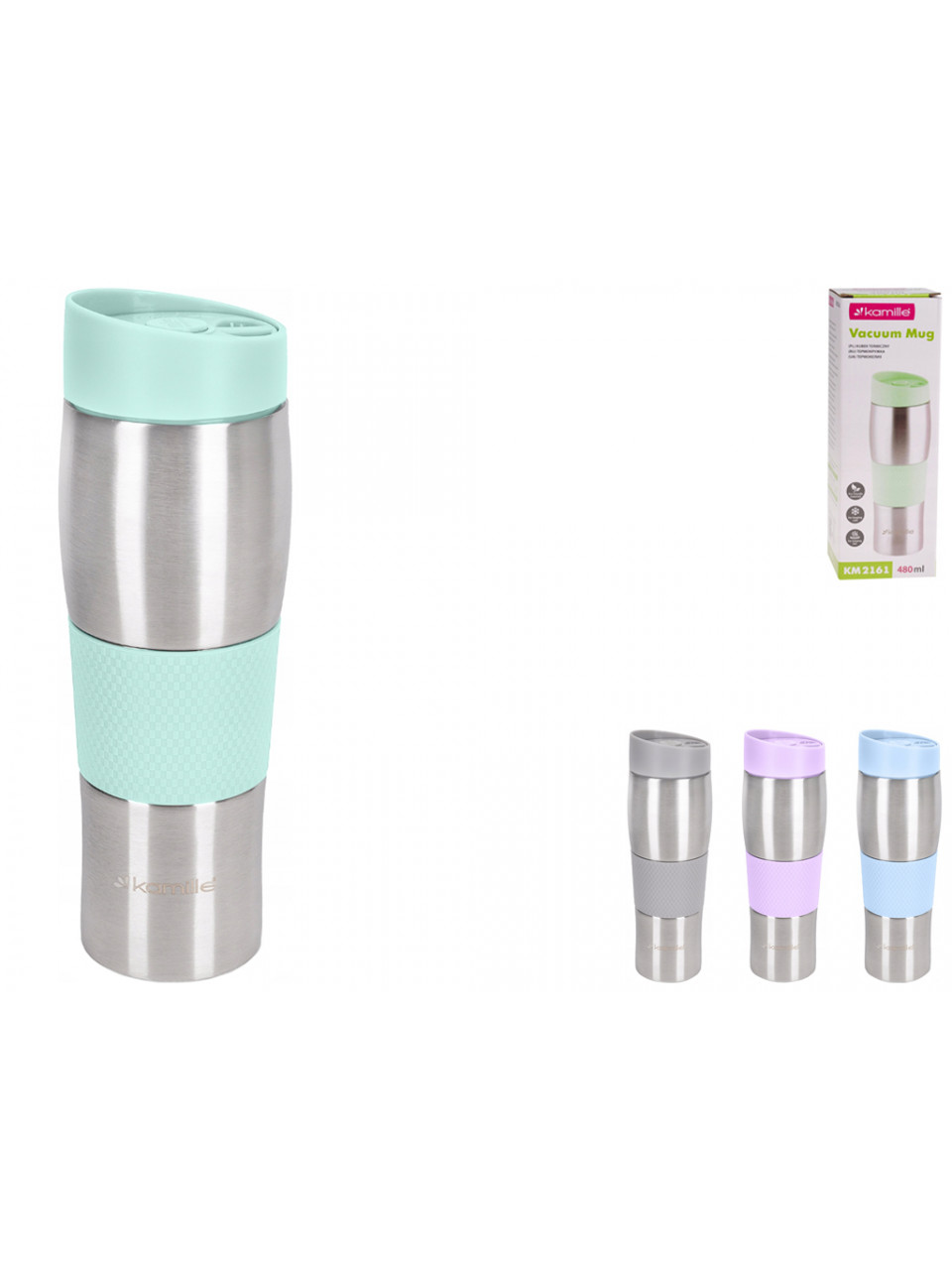 Чашка-термос 480 мл. Kamille із нержавіючої сталі з TPR вставкою (сірий) Термопляшка 480мл з нержавіючої сталі з TPR-вставкою (ментоловий, блакитний, ліловий, сірий).