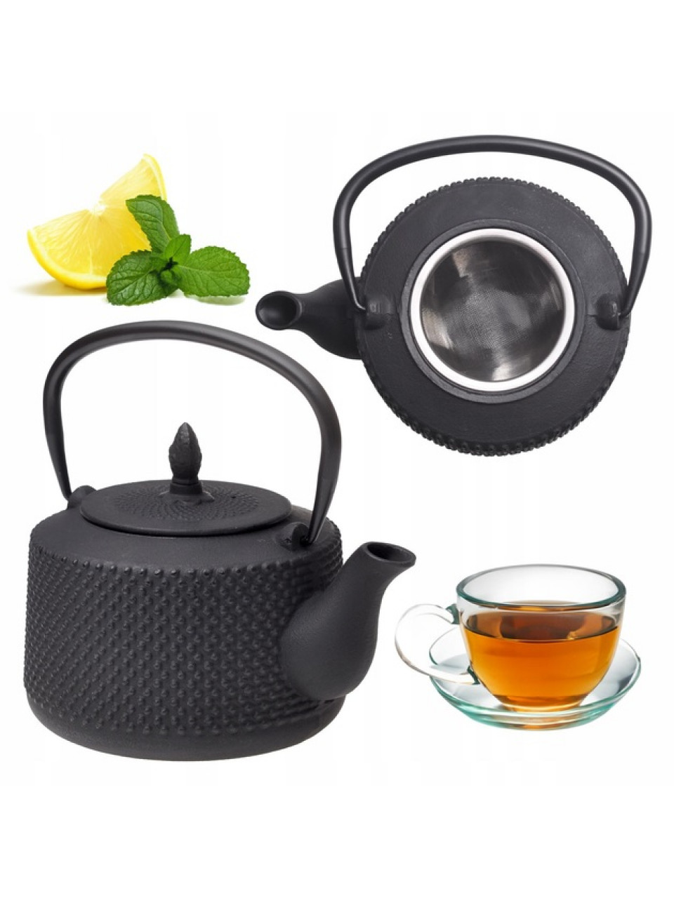 Чавунний чайник Kamille 1000 мл, з металевим ситом та емальованим покриттям всередині.