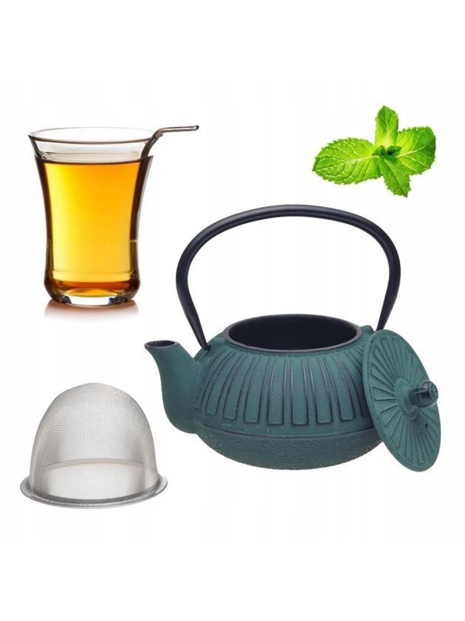 Чавунний чайник для заварювання – 600 мл, з металевим ситом та емальованим покриттям всередині.
