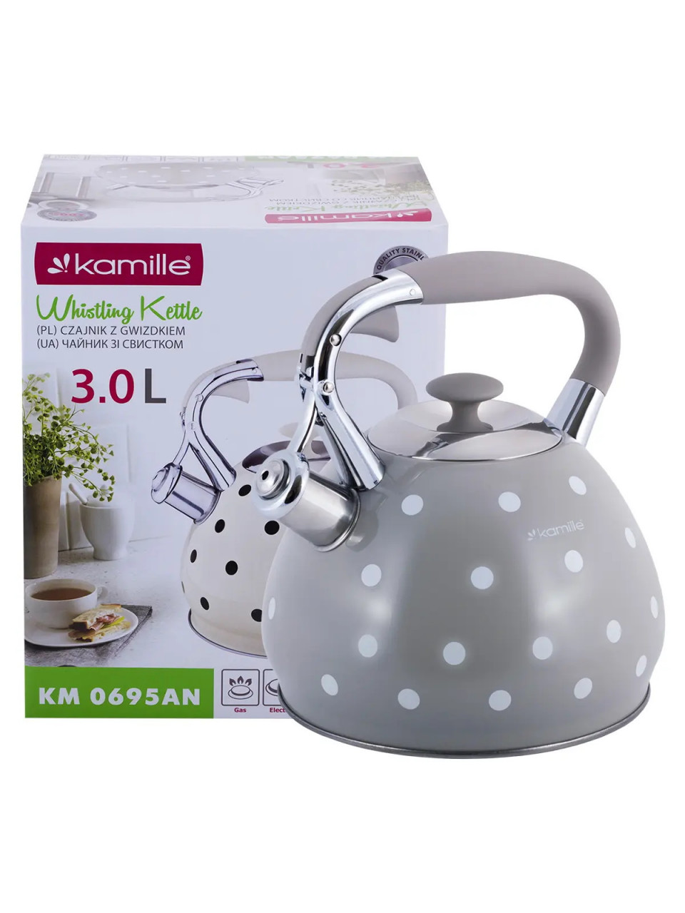 Чайник 3л з нержавіючої сталі зі свистком i ручкою з покриттям "soft-touch" (бiлий, бежевий, кавовий)