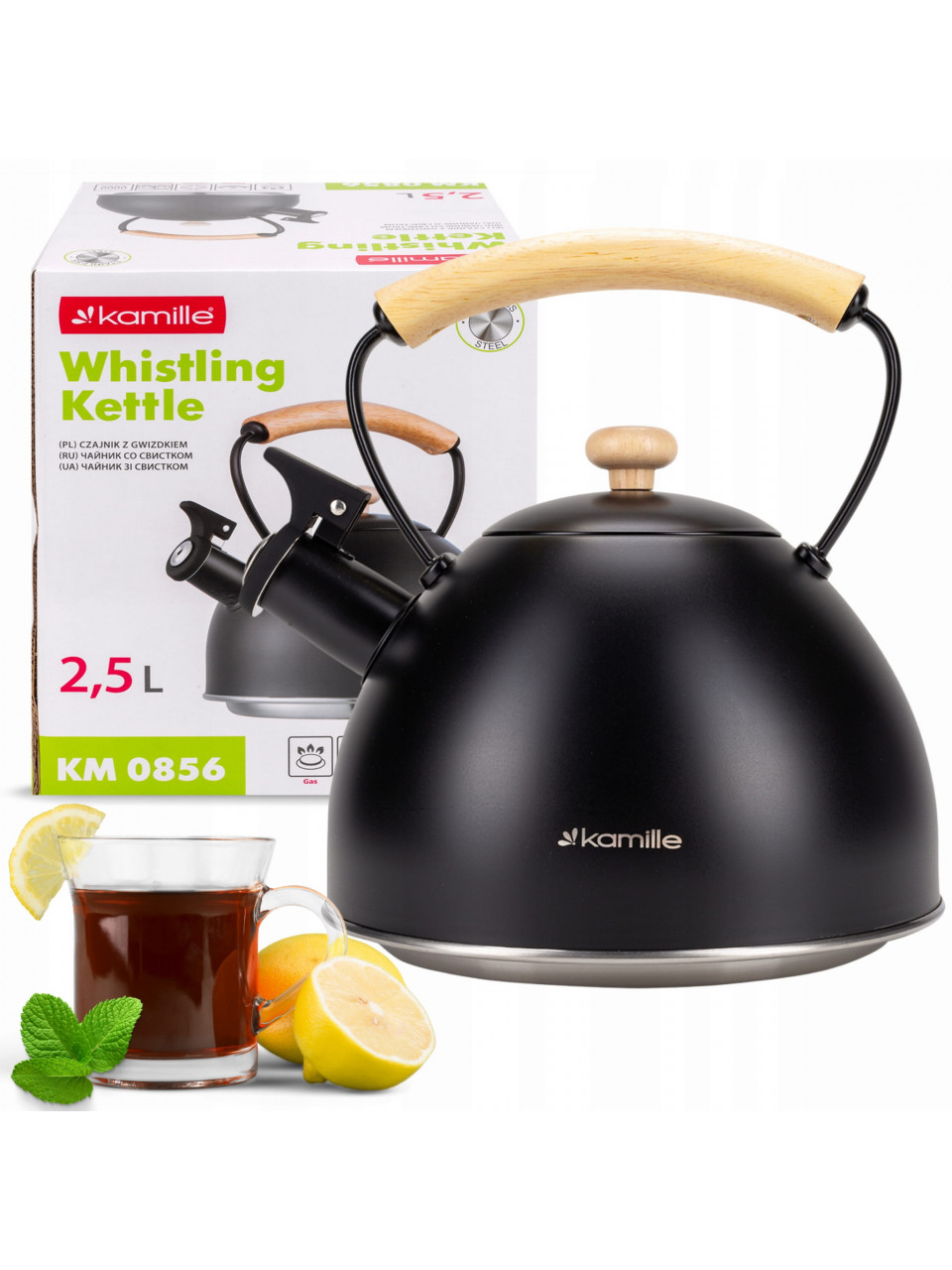 Чайник Kamille 2,5 л, з нержавіючої сталі зі свистком, індукція, чорний