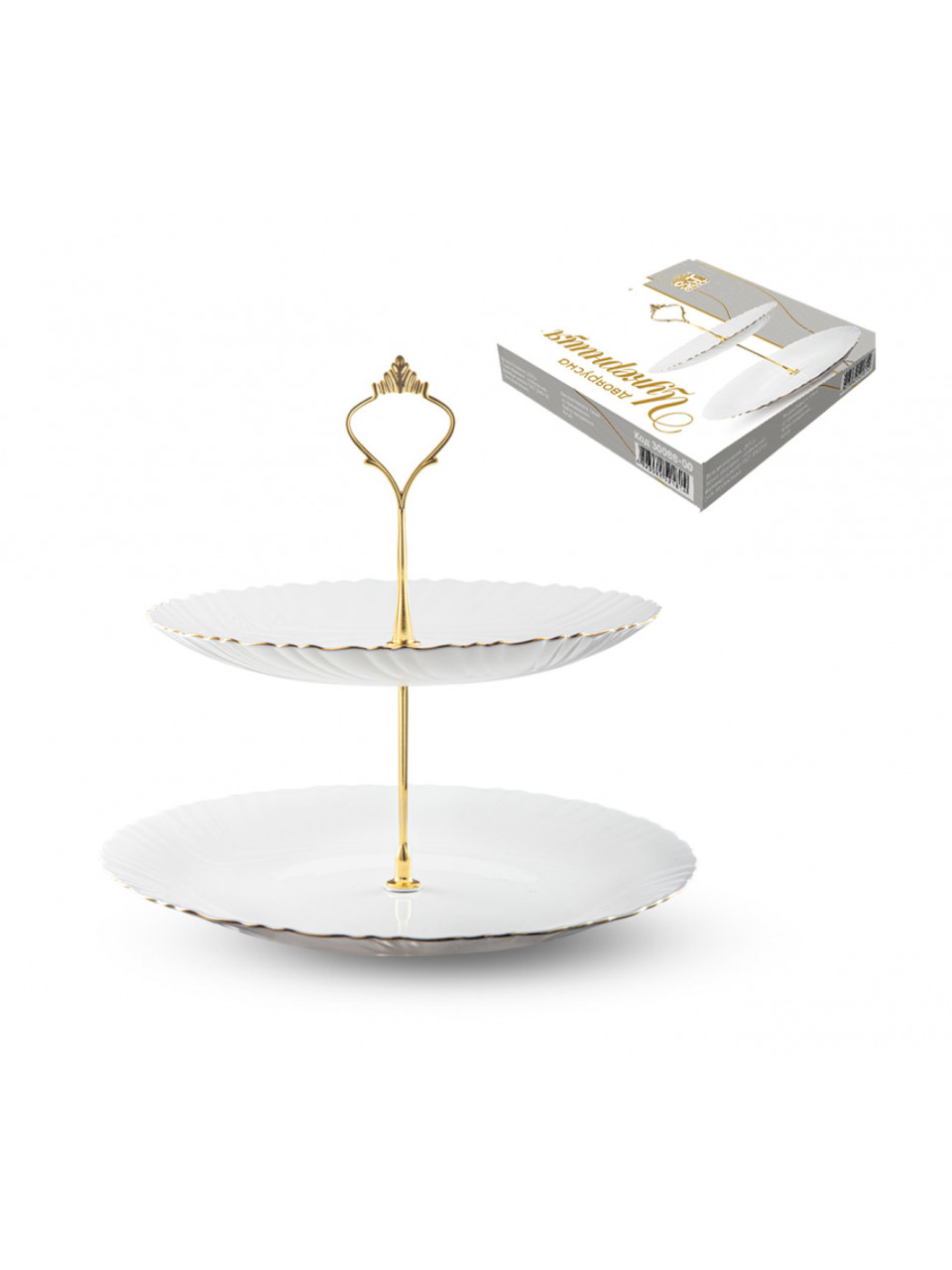 Цукерниця 2х ярусна S&T Золотий кант біла (10',8')