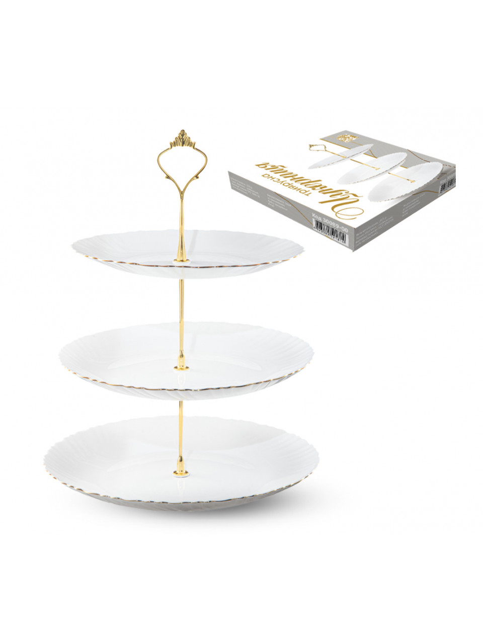 Цукерниця 3х ярусна S&T Золотий кант біла (10',8')