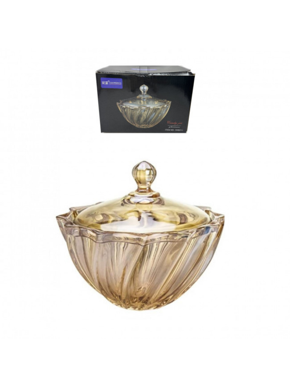 Цукерниця з кришкою Фьюжн Амбер DM601J від виробника HELIOS виготовлений з якісного скла, що не вступає із вмістом у реакцію та не виділяє шкідливих речовин. Скляна цукерниця є екологічно чистою, тому що при виробництві використовується сировина, технології, матеріали відповідно до прийнятих нормативів, на відміну від китайського товару.