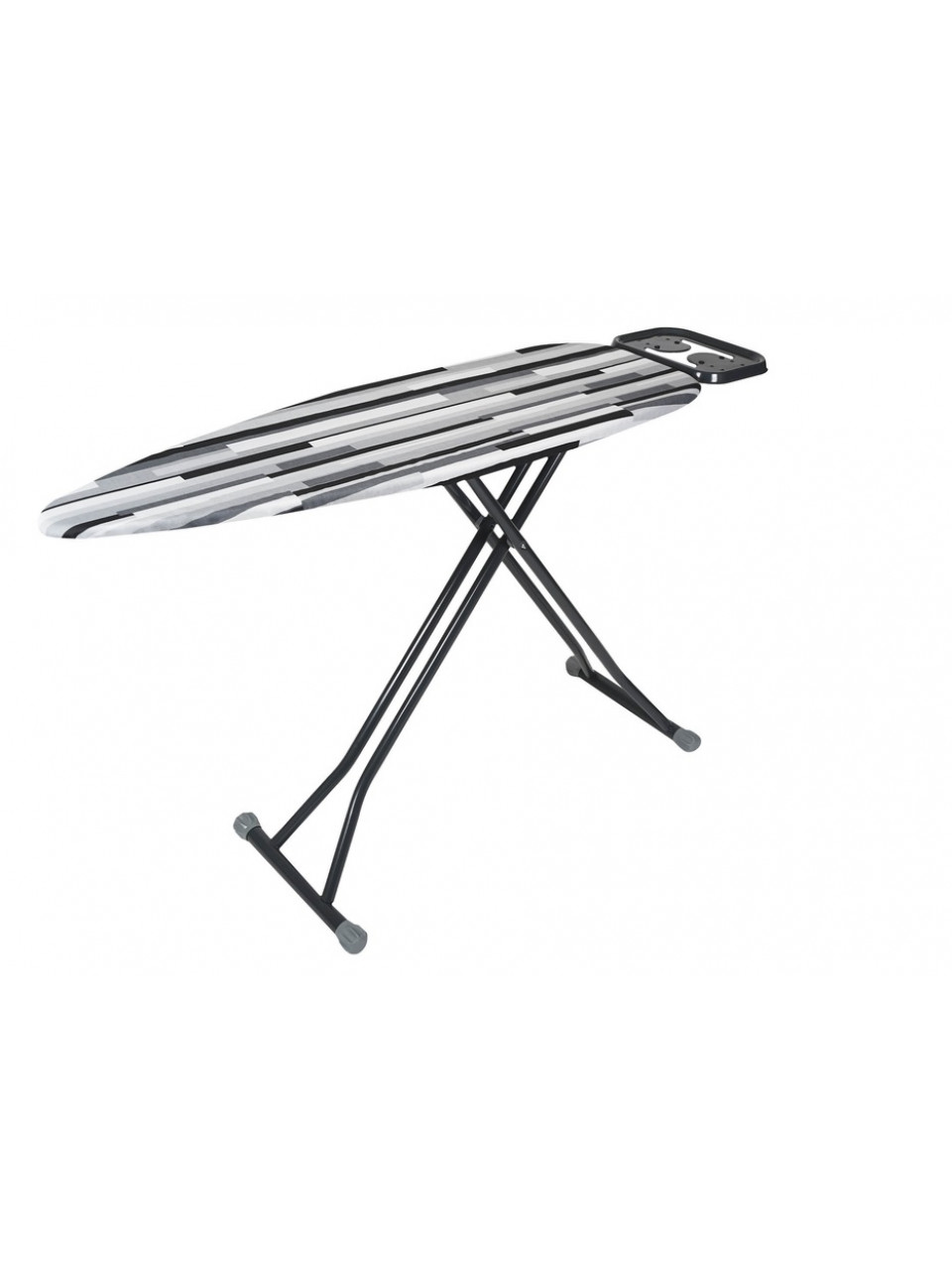 Дошка для прасування цільнометалева CLOUD 118*40 см, з розеткою (смуги чорно-сірі)