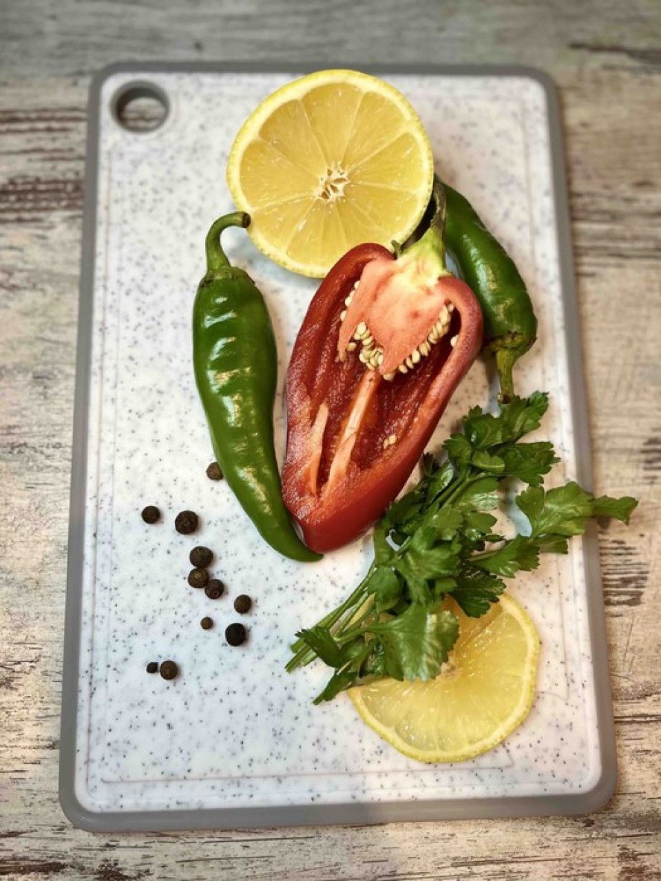 Універсальна обробна дошка виготовлена із харчового пластику. Не вбирає вологу, запахи, стійка до сколів, тріщин, порізів та розшарування. Особлива дизайнерська текстура оброблена для більш тривалого використання та безпечна для лез ножів.