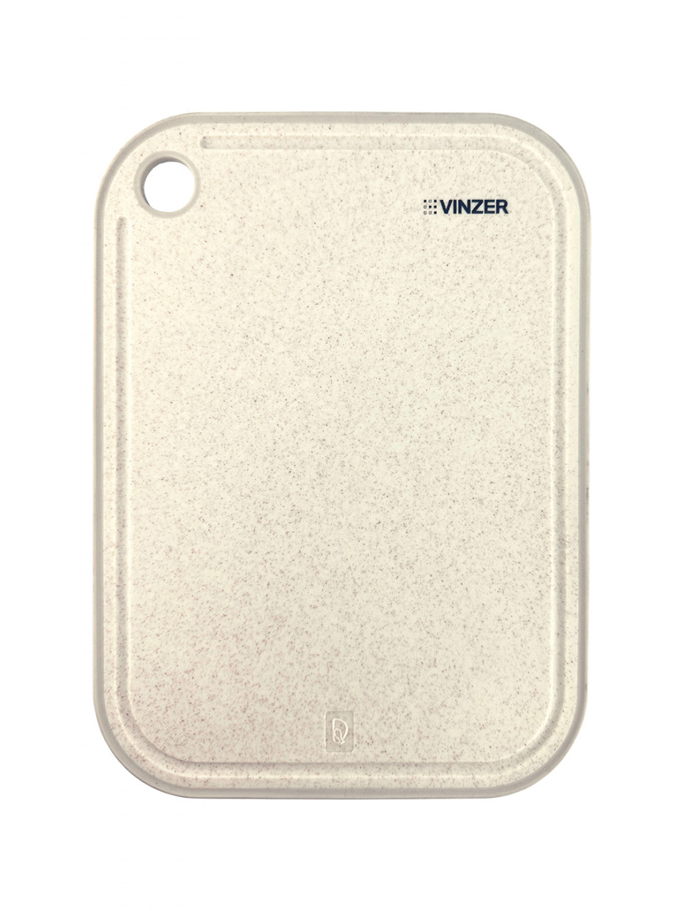 Дошка виготовлена з пшеничного волокна та високоякісного харчового пластику. Матеріал легко миється, не вбирає вологу і запахи. Дошка оснащена прогумованою вставкою по краях для надійної фіксації на столі та має канавку для стікання рідини, а також має терку для натирання часнику.