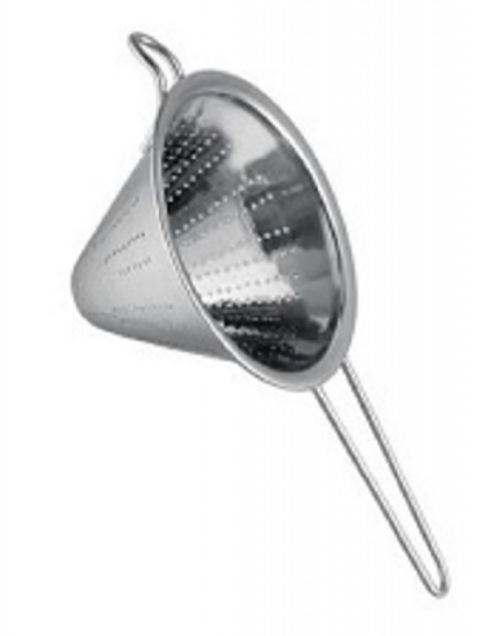 Друшляк конічний з широкою окантовкою виконаний з високоякісної нержавіючої сталі та оснащений зручною прямою ручкою, є петелька для підвішування.