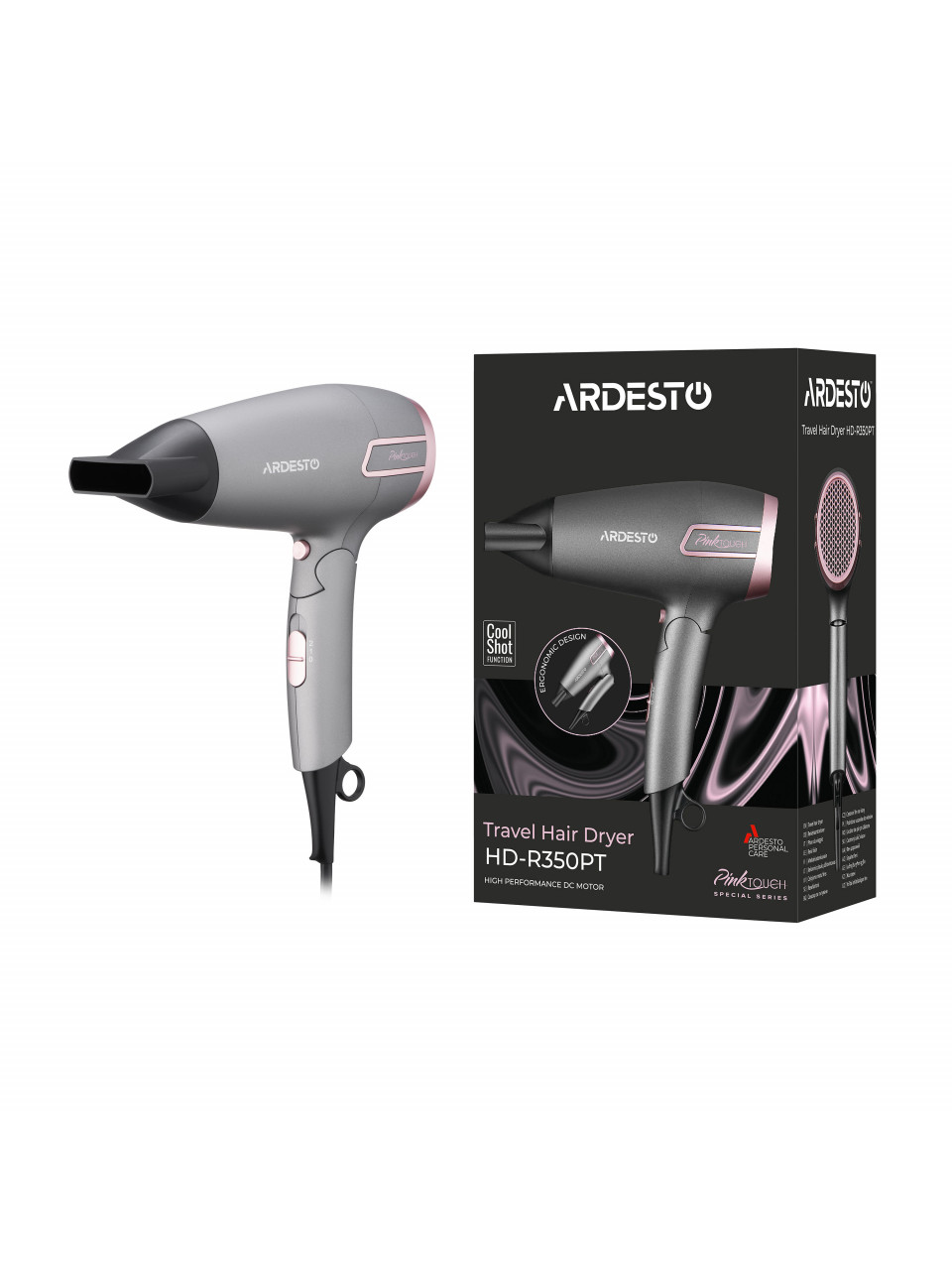 Фен Ardesto Pink Touch, 2000Вт, 2 швидкості, 2 темп.режими, складана ручка, сірий+рожевий