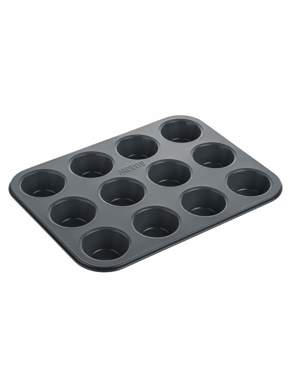 Форма для випікання мафінів Ardesto Gemini, 35х26.5х3см, 12шт, вуглецева сталь, сірий
