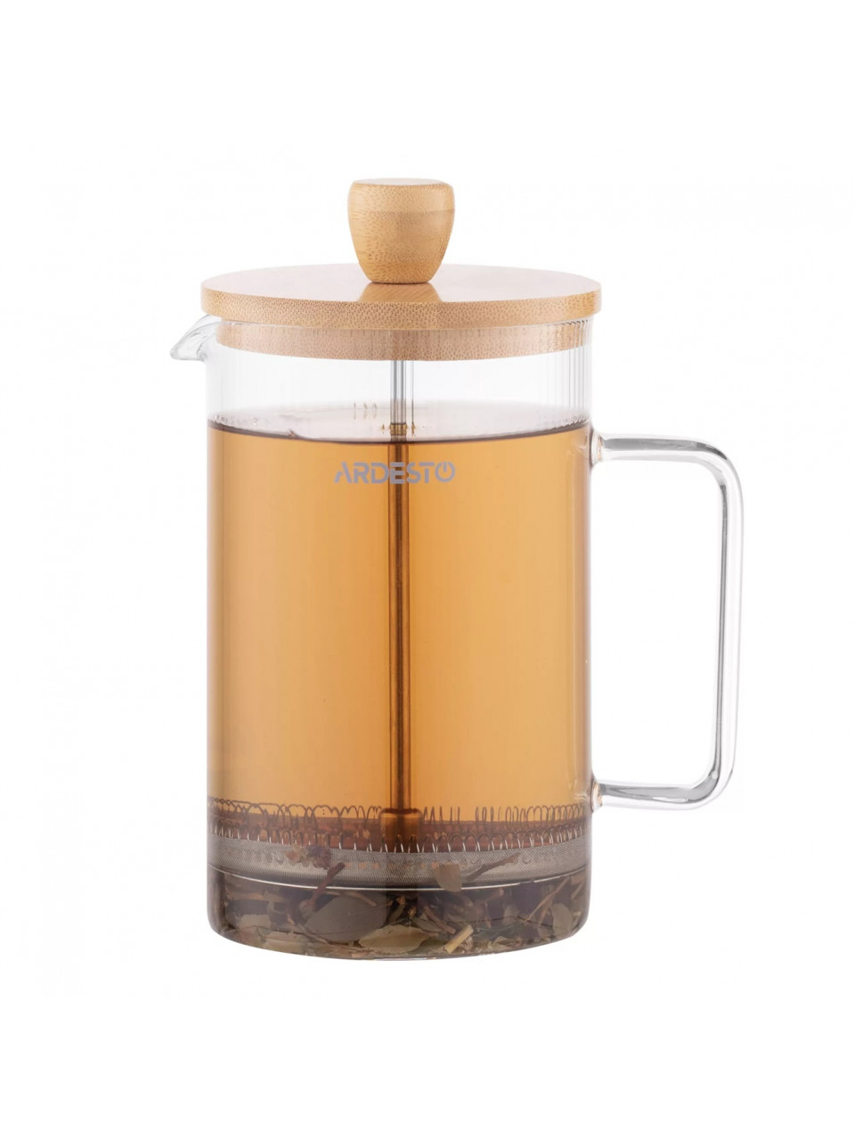 Френч-прес Ardesto Midori, 800мл, боросилікатне скло, нержавіюча сталь, бамбук, прозорий