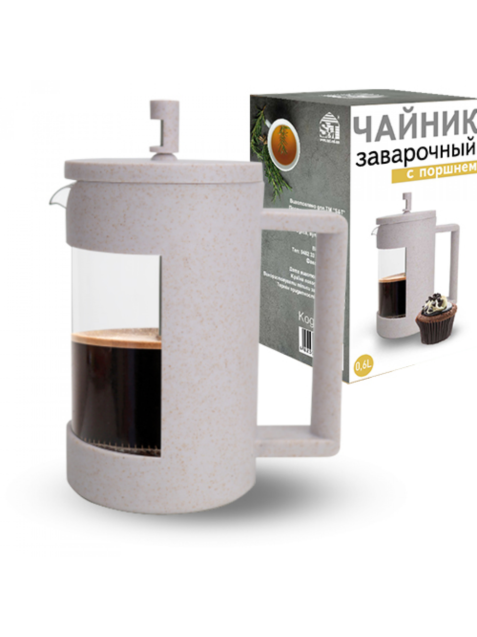 Френч-прес S&T 600 мл (еко пластик + боросилікатне, зміцнене скло)