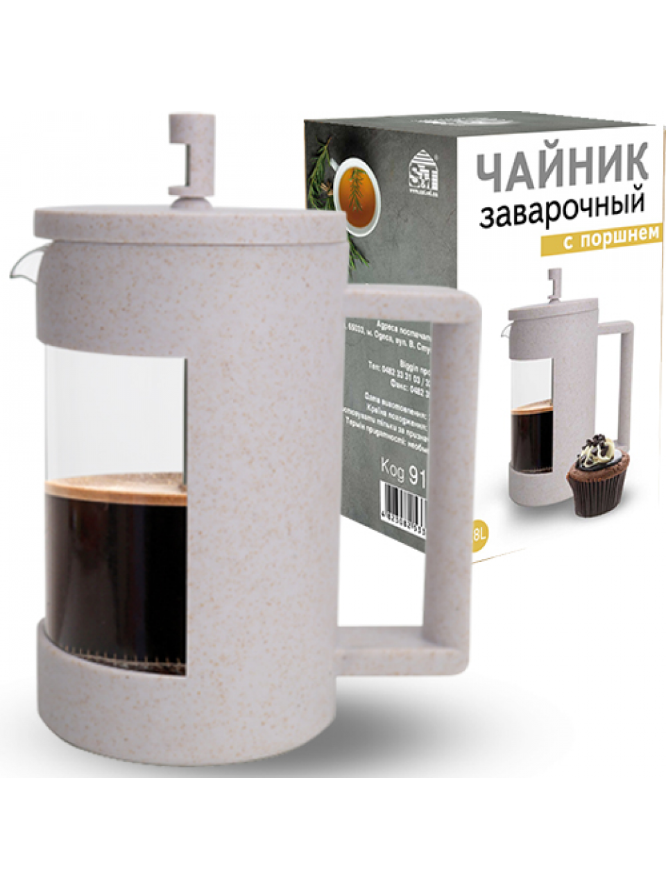 Френч-прес S&T 800 мл (еко пластик + боросилікатне, зміцнене скло)