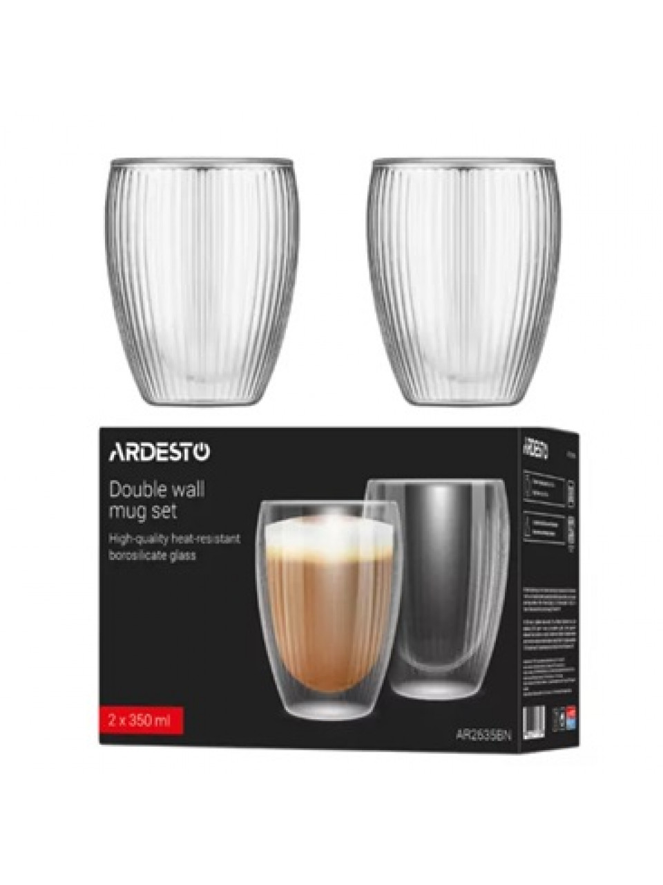 Набір склянок з подвійними стінками Ardesto 350мл, 2шт, боросилікатне скло, прозорий
