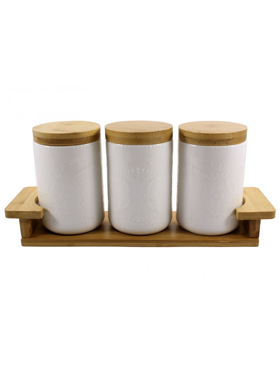 Набір банок Porcelain on bamboo 500 мл. (3 шт.) на підставці, порцеляна