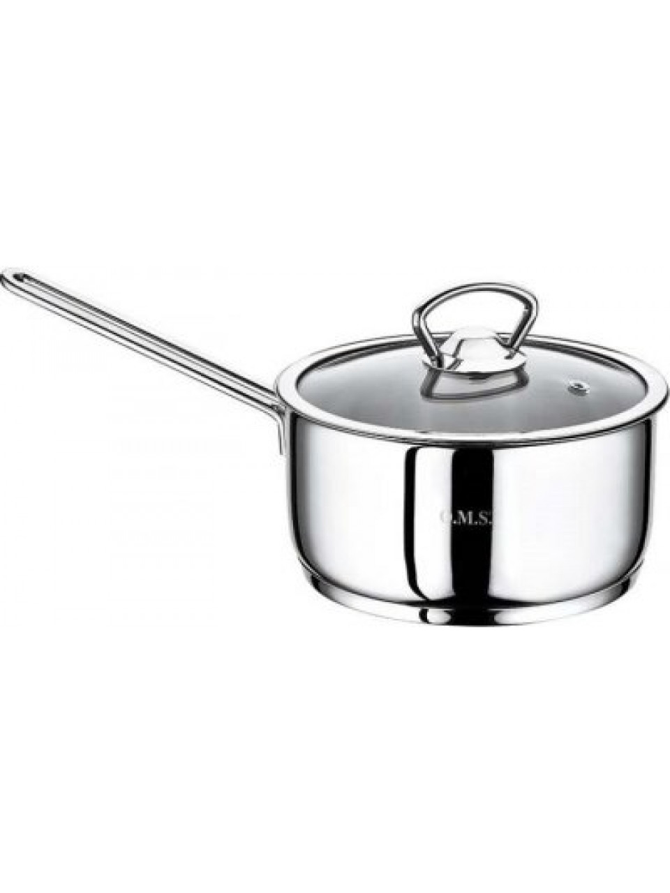 Ківш OMS d-12 см. 0,9 л., з нержавіючої сталі, зі скляною кришкою, металеві ручки (індукція)