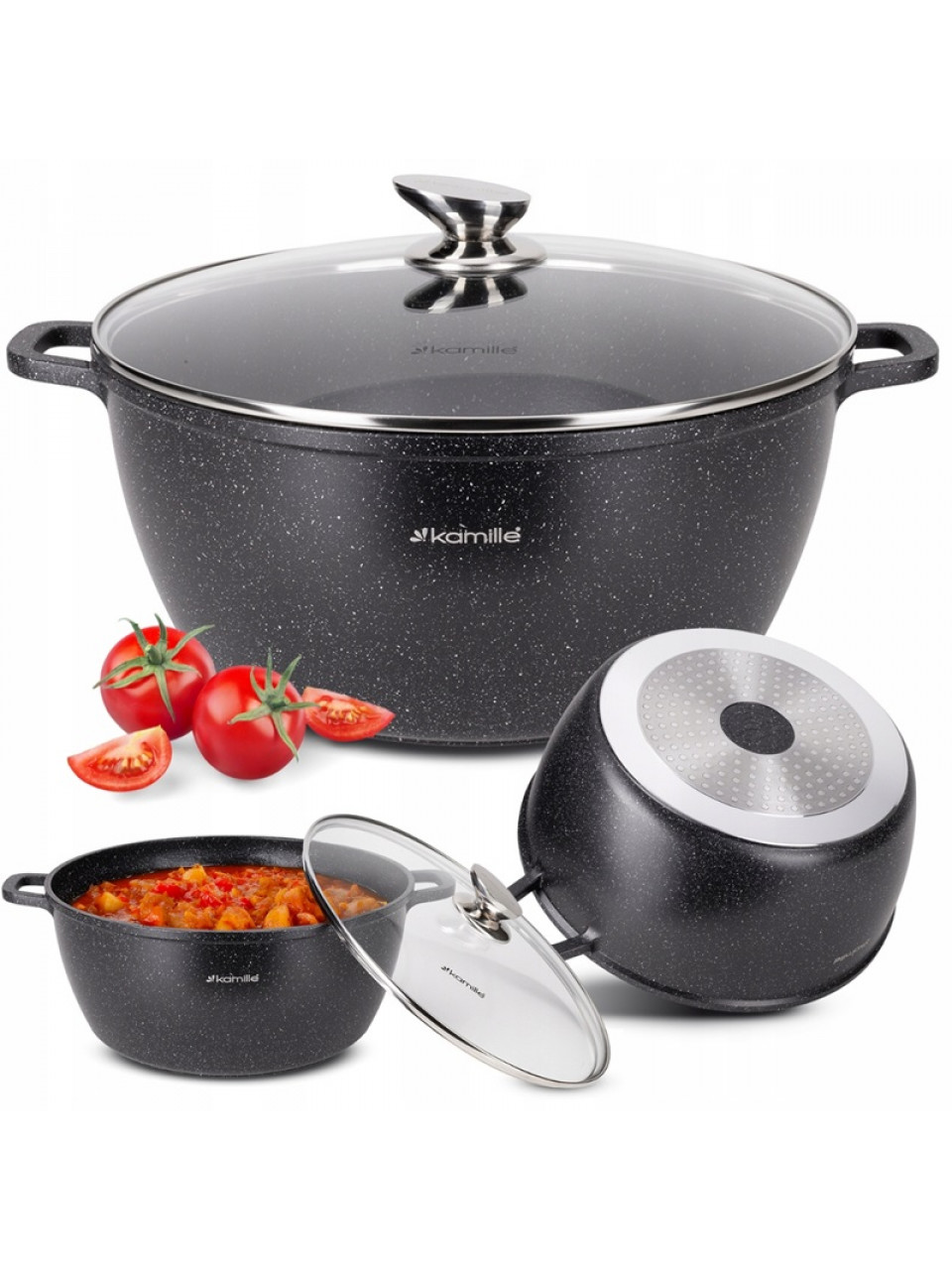 Каструля алюмінієва Kamille 10 л 32*14.5 см з антипригарним покриттям "чорний мармур" і скл. кришкою
