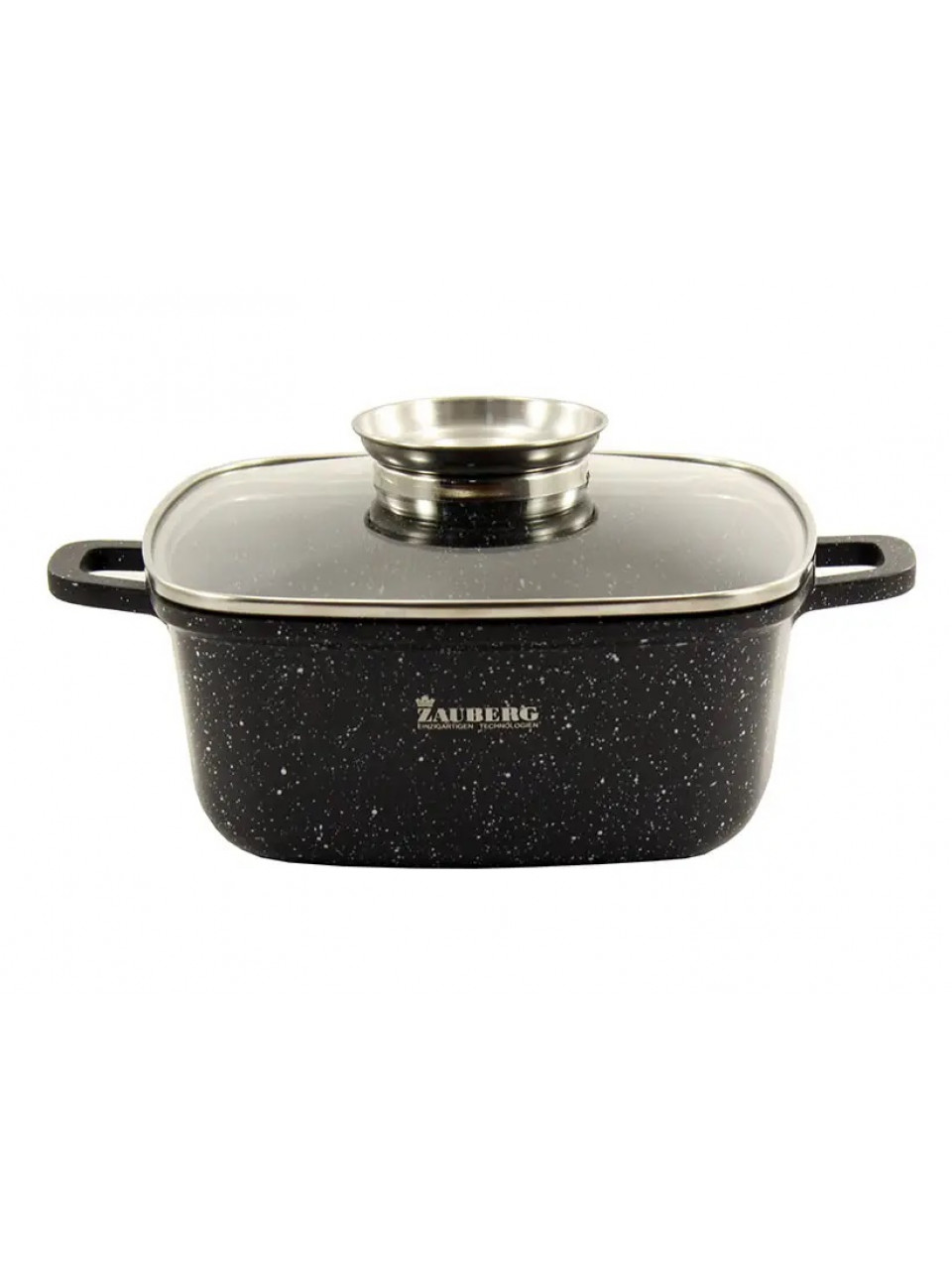 Каструля алюмінієва квадратна Zauberg Black МАРМУР 5,4 л, із скляною арома-кришкою, індукція