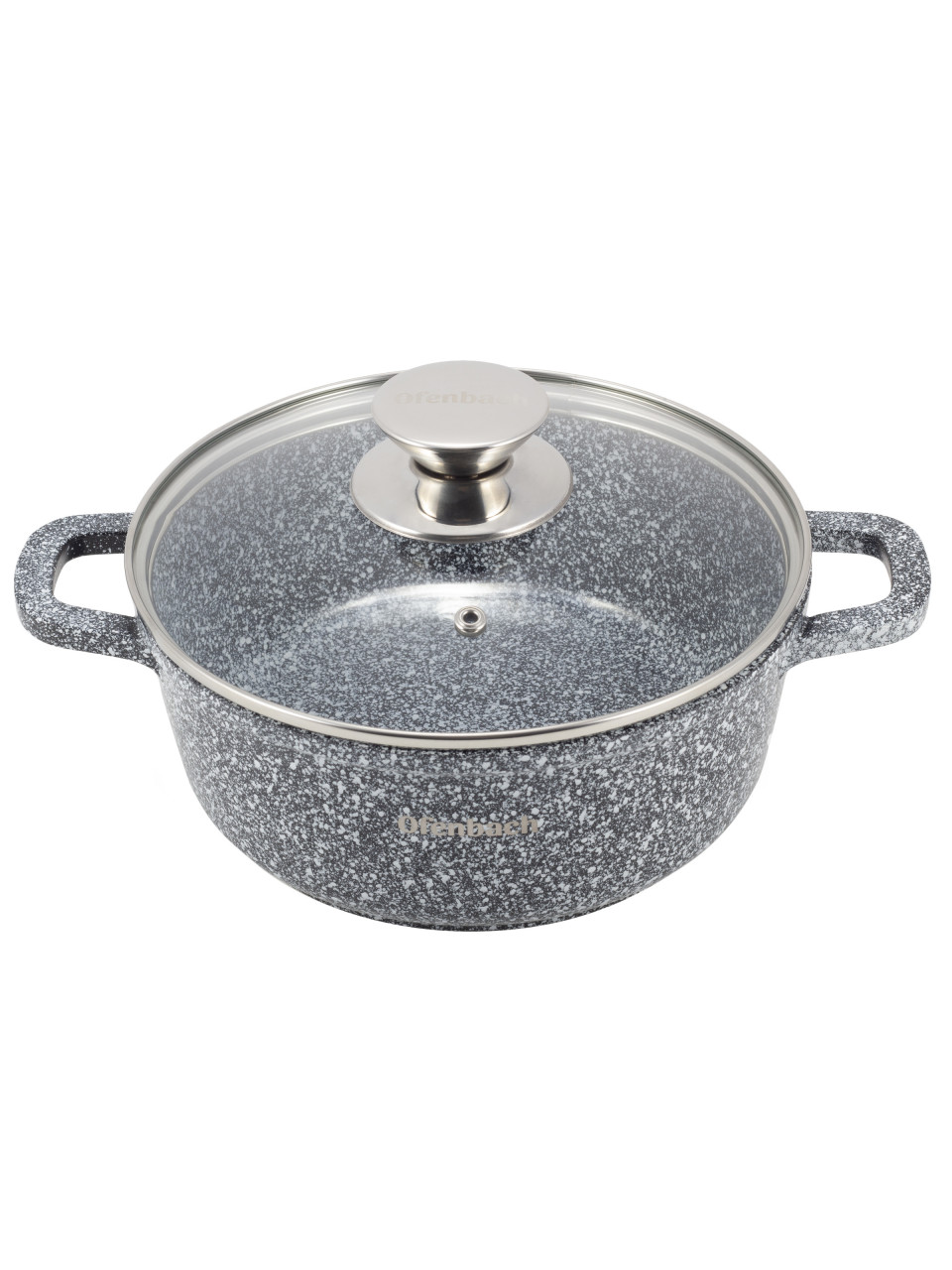 Каструля алюмінієва Ofenbach 4,5 л., 24*11,5 см. антипригарним покриттям "Snow marble" і скляною кришкою