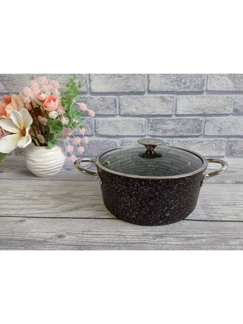 Каструля алюмінієва OMS 7,8 л., d-30 см., з антипригарним покриттям, зі скляною кришкою, чорний