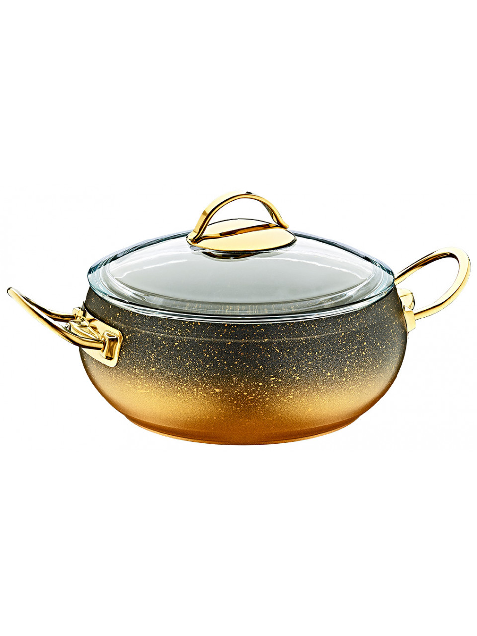 Каструля алюмінева антипригарна OMS D=26см 5,5л кришка скло, індукція, золото