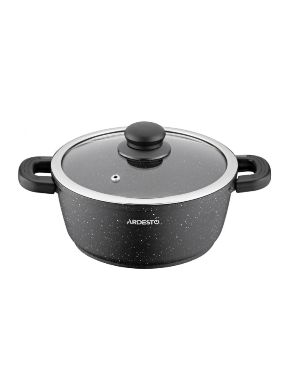 Каструля Ardesto Gemini Anzio, скляна кришка, 28 см, 6,4 л, чорний, алюміній