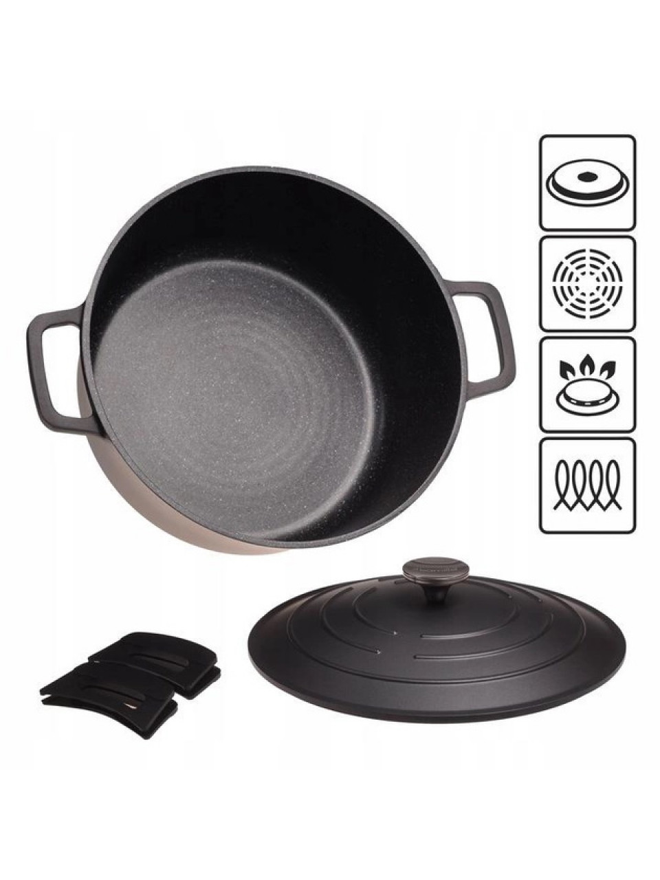 Литий корпус - запорука високої ефективності посуду, тепловодність - тепло максимально рівномірно розподіляється по алюмінієвому корпусу. Відсутність швів і кріплення на корпусі гарантує повноцінне нагрівання чаші каструль і виключає ймовірність виникнення зон перегріву.