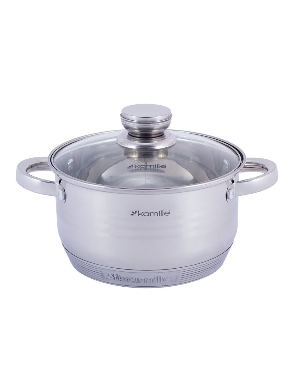 Каструля Kamille Pimp 3 л. з нержавіючої сталі з кришкою і порожніми ручками