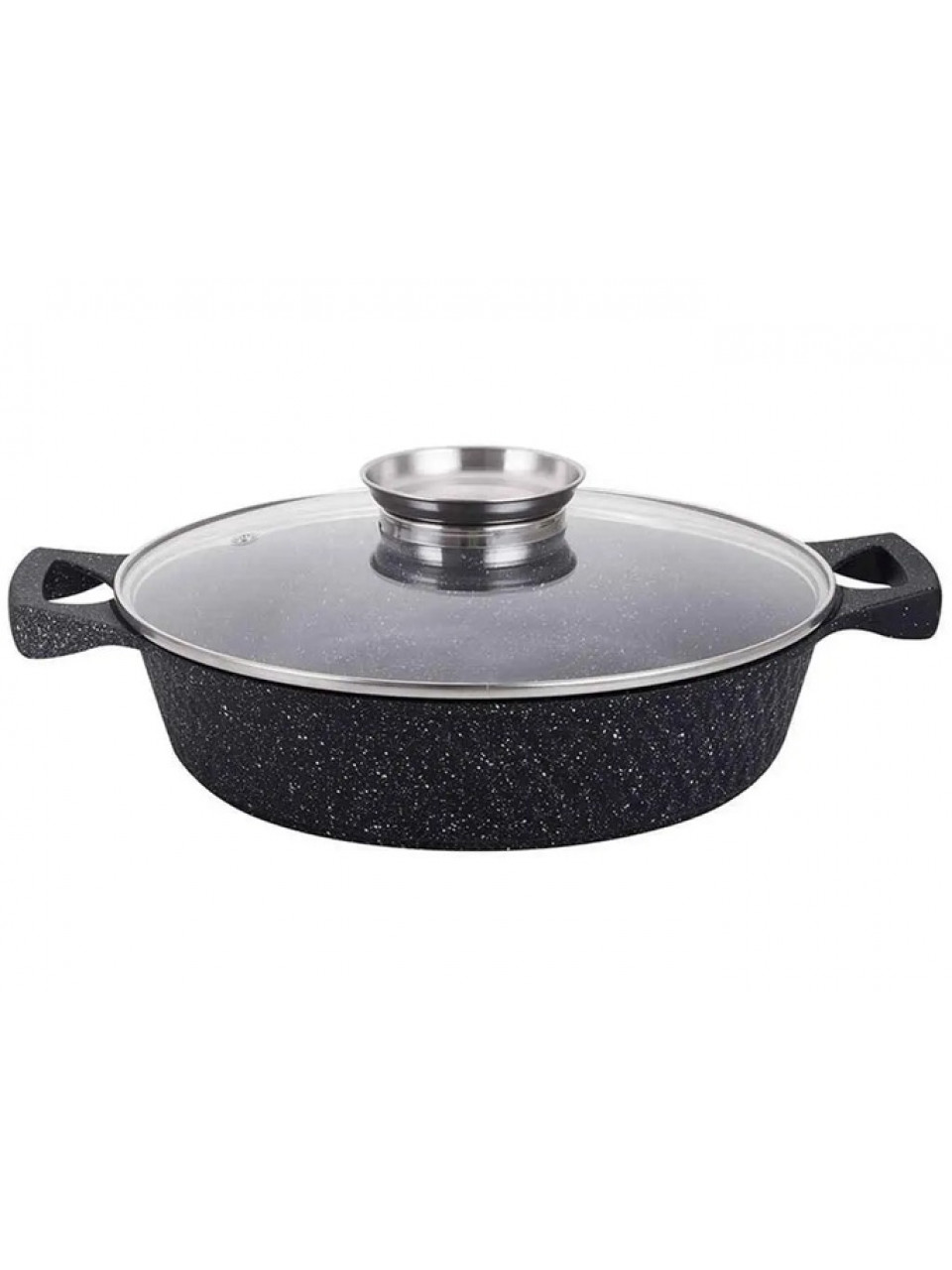 Каструля мілка Zauberg Чорна 3D 3,5 л алюмінієва з мармуровим покриттям із скл.кр., індукц.