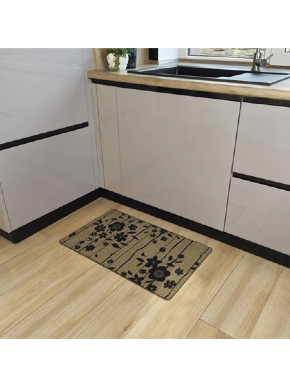 Завдяки своїм розмірам 0.45 x 0.75 м, він чудово впишеться у простір з шириною 0.3 - 0.45 м та довжиною 0.5 - 1 м. Безворсова структура з прогумованою основою робить цей килимок не лише естетичним, але й практичним. Виготовлений з гуми та поліестеру зі щільністю 1300 г/м² та висотою ворсу в 1 см, він приємний на дотик та легкий у догляді: достатньо прання при 30 °C, без відбілювання, хімічної чистки та прасування. З вагою в 0.56 кг цей килимок стане стильним та функціональним доповненням вашого інтер'єру.