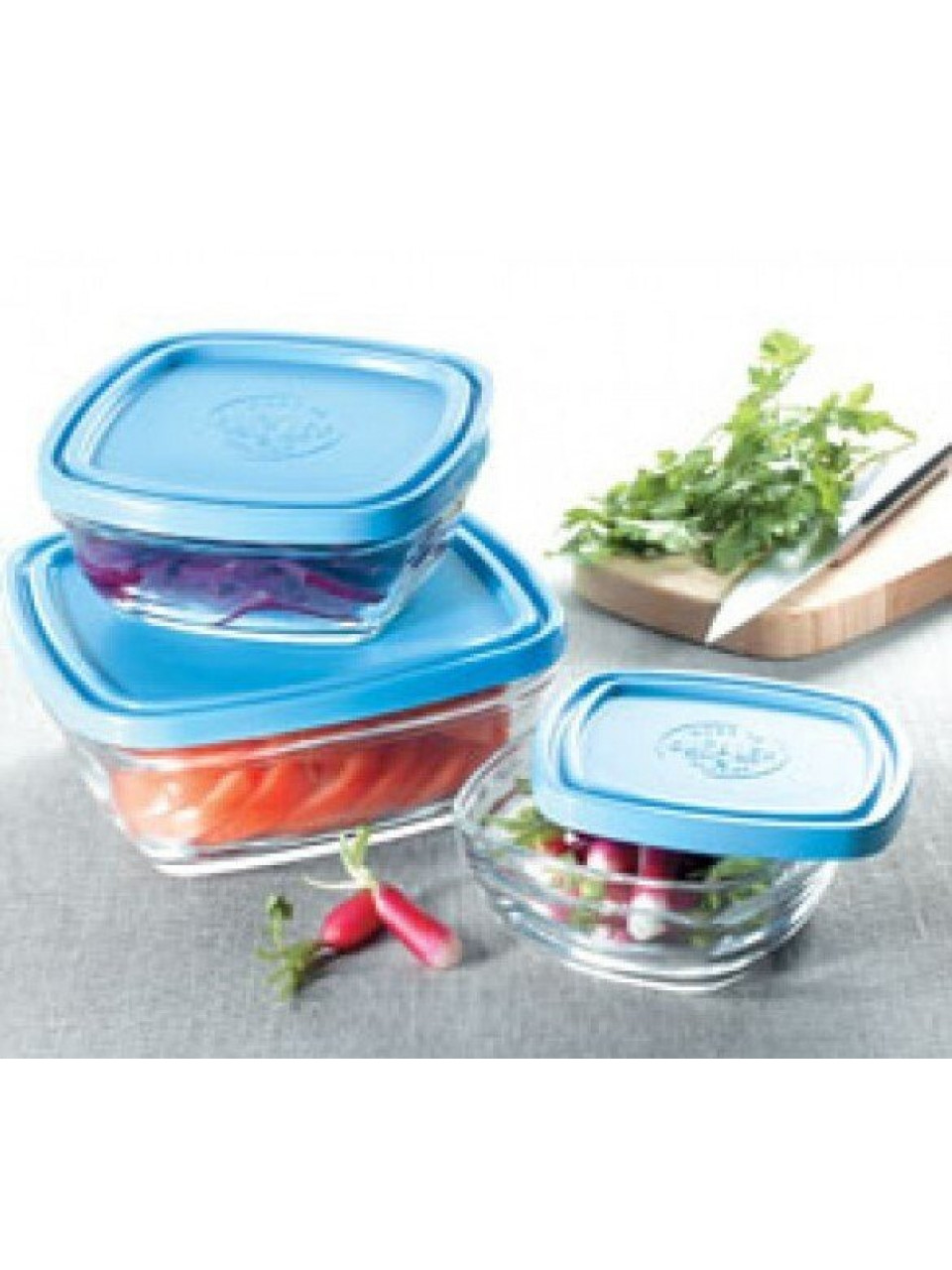 Контейнер для зберігання Duralex Lys Carre, квадратний, 17см, 1150мл, скло, платик, прозорий, синій