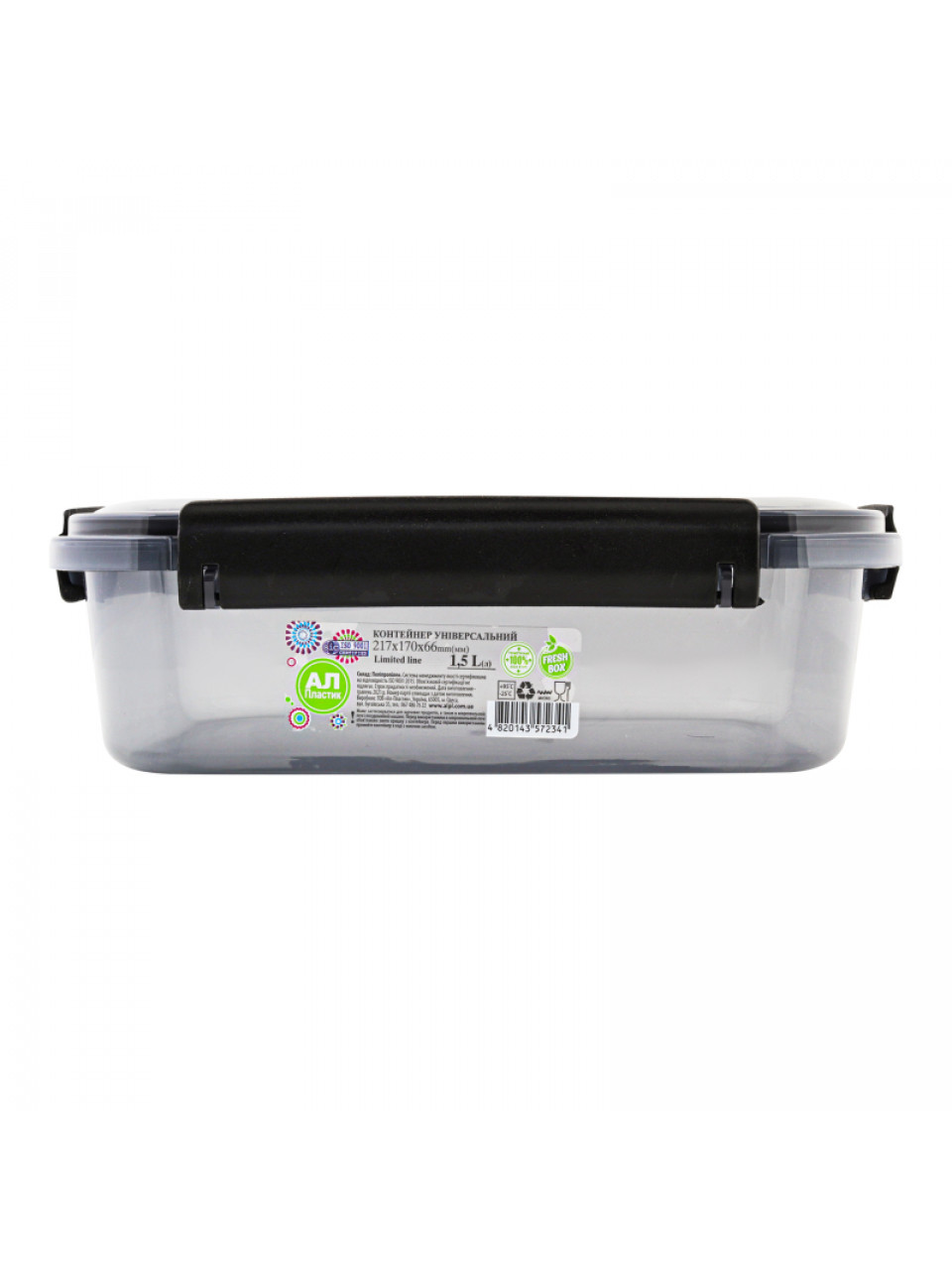 Контейнер харчовий 1,5 л, Limited line, герметичний прямокутний, 21,7*17*6,6 см (чорний прозорий)