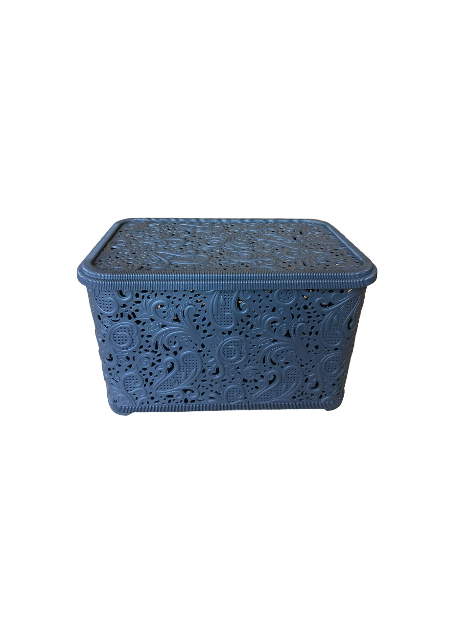 Корзина для зберігання побутових речей Ажур від Elif Plastic допоможе ваш у побуті і прикрасить інтер'єр. Прямокутна форма з плоским дном дозволяє зручно розташувати побутові дрібниці чи прасовану білизну. Корзина виготовлена з якісного пластику турецького виробництва. Корпус виконаний у вигляді ніжного ажурного плетіння, завдяки чому по всій корзині є отвори, що забезпечують постійну циркуляцію повітря всередині. Зручні ручки з гладкого пластика і відносно невеликі габарити 21 * 29 * 12 см представляють собою перевагу в траспортуванні корзини. Вона також комплектується кришкою. До цієї корзини можна підібрати комод, корзину для білизни, побутові корзинки меншого розміру, і інші аксесуари для ванної з цієї ж серії, що зробить ваш побут стильним та вишуканим.