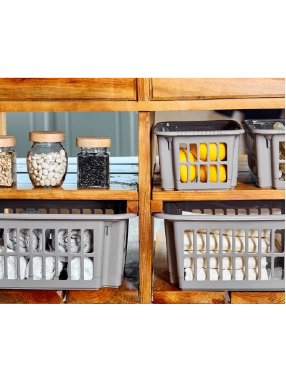 Пластикова корзина підійде для зберігання побутових речей і приладдя будь-якого призначення. Особливо в кошику зручно зберігати речі на горищі або в підсобці. Конструкція виконана таким чином, щоб можна було зручно складати ящики один на одний - це дозволить зберегти цінний простір в приміщенні.Борти кошика мають отвори, щоб при необхідності можна було побачити, що знаходиться в ємності. Зроблений кошик із зносостійкого поліпропілену високої якості, який здатний витримувати велику вагу. В асортименті на вибір представлені моделі об'ємом від 4,5 до 30 літрів.