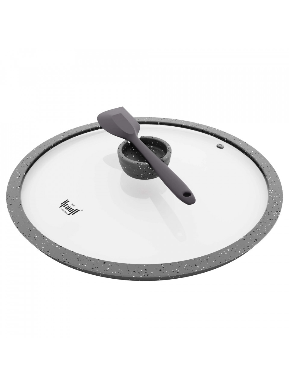 Кришка виготовлена з термостійкого загартованого скла, міцного і довговічного, яке може безпечно контактувати з харчовими продуктами. Краї кришки виготовлені з силікону преміум-класу, стійкого до високих температур, який захищає посуд від подряпин і забезпечує його щільне прилягання. Утворює замкнутий простір усередині каструлі або сковороди, у такий спосіб прискорюючи приготування їжі, що дає змогу повністю контролювати процес приготування без втрати тепла. Пар і волога залишаються в сковороді, що робить продукти соковитими і смачними.