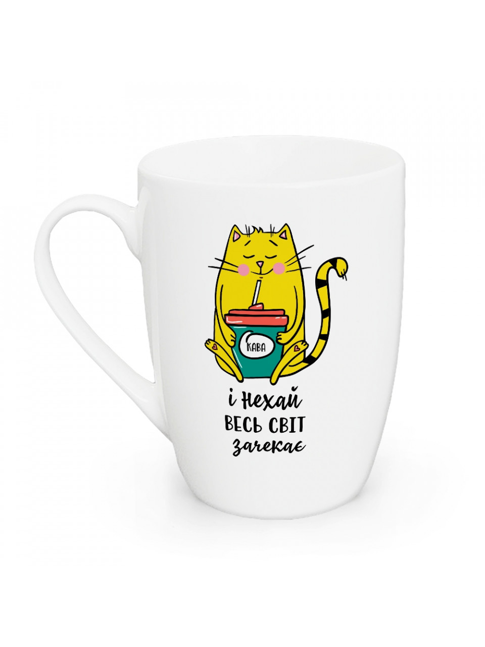 Кружка 360 мл. Kvarta "І нехай весь світ зачекає" (жовтий), капучіно + коробка