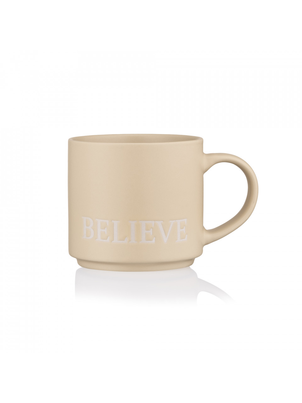 Керамічна чашка об’ємом 420 мл додасть емоцій ранковим ритуалам. Дизайн урізноманітнено написом «Believe», аби дарувати натхнення щодня. Виріб можна мити в посудомийній машині й використовувати в мікрохвильовій печі. З огляду на верхній діаметр 9,5 см і висоту 9,4 см, чашка згодиться для будь-якого напою.