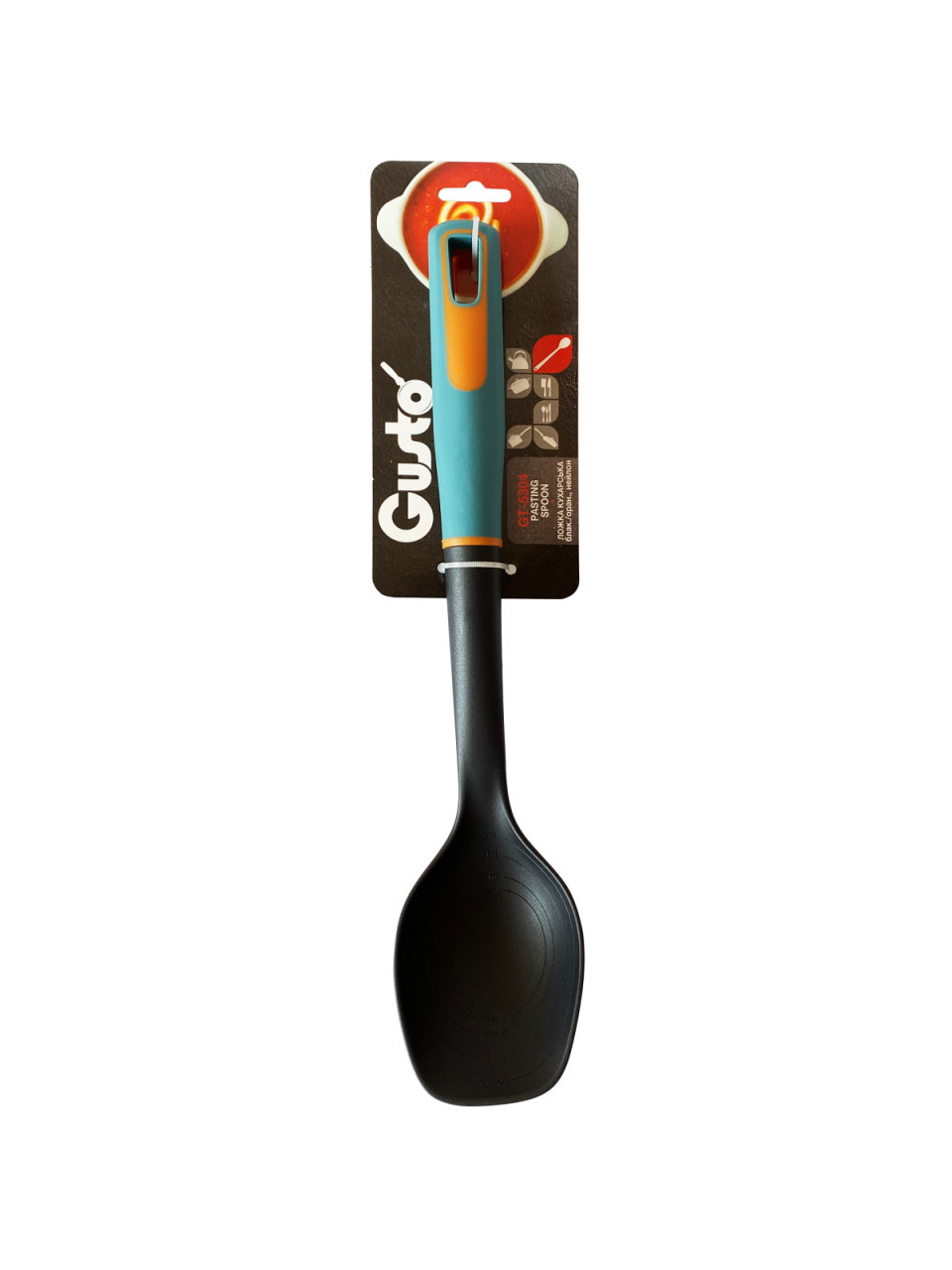 Ложка кухарська GT-5304 блакитна/жовтогаряча GUSTO – стильна модель виконана з якісного нейлону. Нейлон відрізняється своєю термостійкістю та витримує високі температури. Ручка виготовлена з термостійкого пластику та термопластичної гуми.