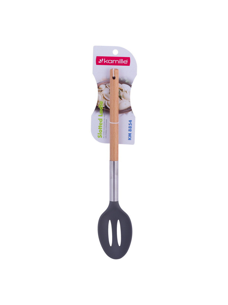 Ложка кухарська нейлонова Kamille Wood 34,5 см. з прорізами, з дерев'яною ручкою