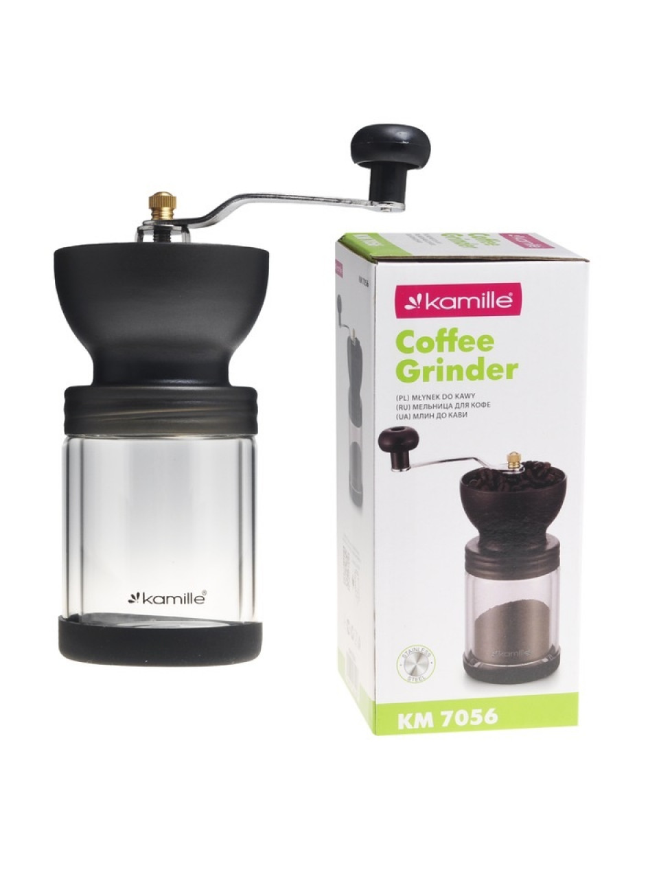 Виготовлений з високоякісної нержавіючої сталі, пластику та скла. Має керамічний шліфувальний механізм і регулювання грубості помелу. Ємність резервуара для меленої кави: 220 мл.