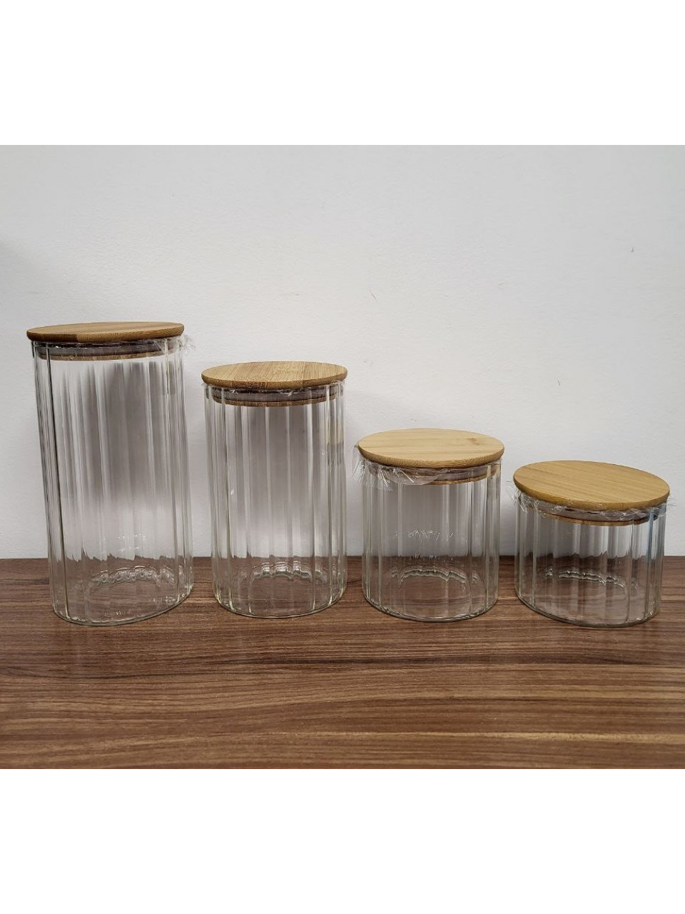 Ємність скляна Vittora, 500 мл з дерев'яною кришкою (кругла смугаста)