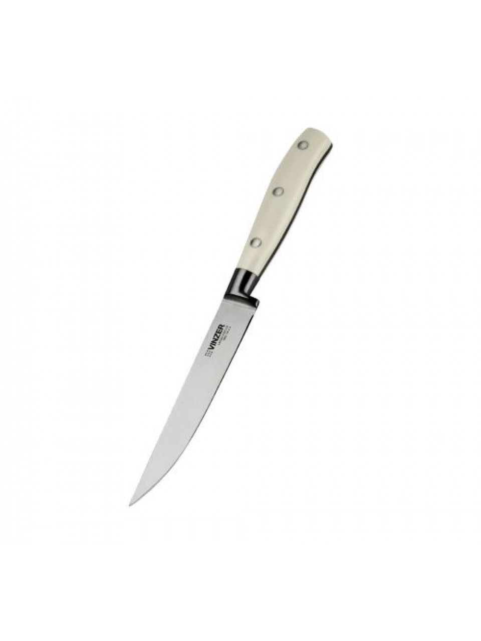 Ніж – один із головних предметів на будь-якій кухні. Ніж тонко та акуратно наріже різні продукти завдяки гострому заточуванню. Лезо має клиноподібний переріз, тому заводське заточування тривалий час зберігає гостроту. Ніж виготовлений з міцної високовуглецевої нержавіючої сталі, яка стійка до корозії, деформації та пошкоджень. Бакелітова ручка зручно лягає в руку і не ковзає під час роботи.
