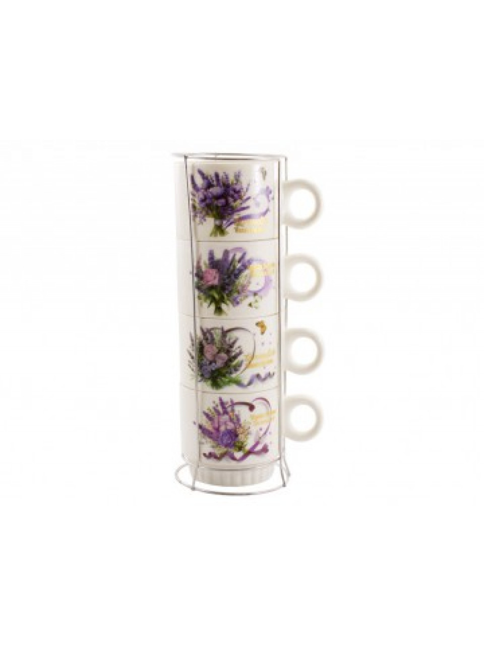 Набір чашок Interos БУКЕТ ЛАВАНДИ 250 мл на стійці 4 - пр. порцеляна