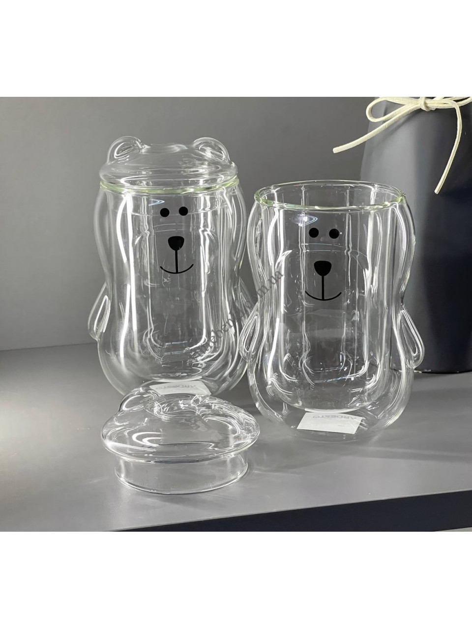 Набір чашок с кришкою Ardesto Animals з подвійними стінками, 300 мл, 2 од., боросилікатне скло