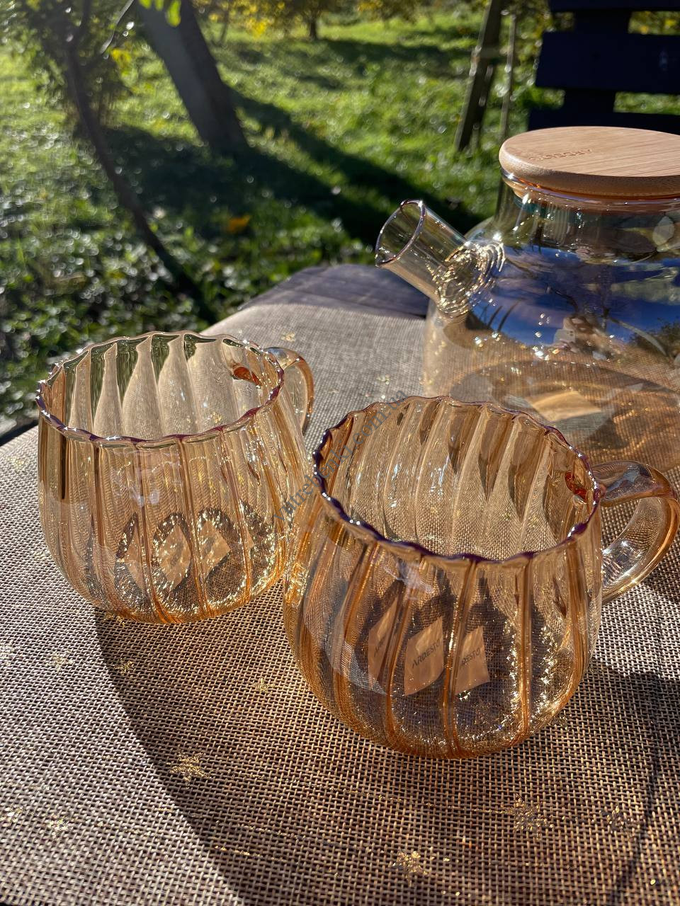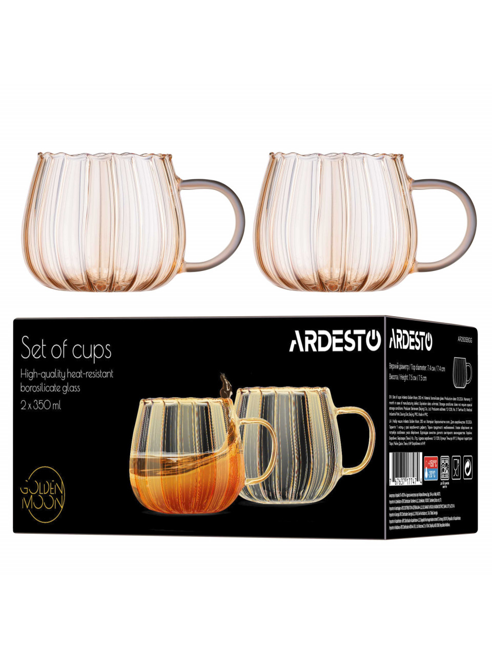 Набір чашок з ручками Ardesto Golden Moon 350мл, 2шт, боросилікатне скло, прозорий